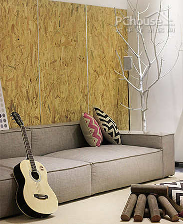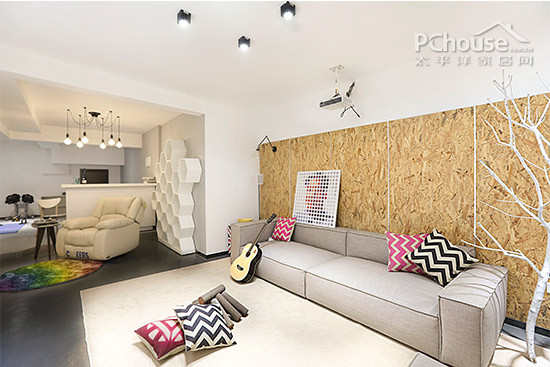 编辑点评:开放式的客厅布局使空间显得简约大气。视听区酒吧区连为一体,一览无遗,有助于实现轻松、随意的生活方式。木质吉他的点缀,增添了空间的美感与情调,丰富了客厅的艺术内涵。