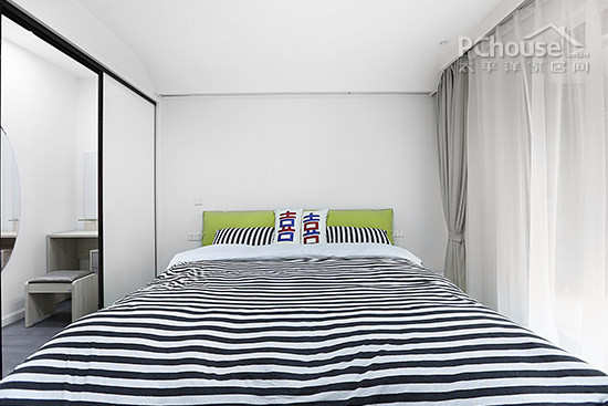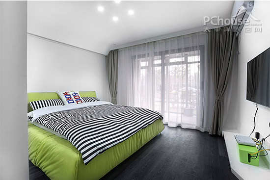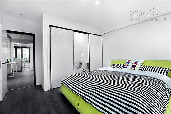 编辑点评:“冬天来了,春天还会远吗?”出餐厅,踏进屏风的另一头,卧室空间让你再次大开眼界。体验过黑白灰带来的如冬天般的纯净与宁静,卧室床饰的一片绿毫无保留地绽放着春的勃勃生机。