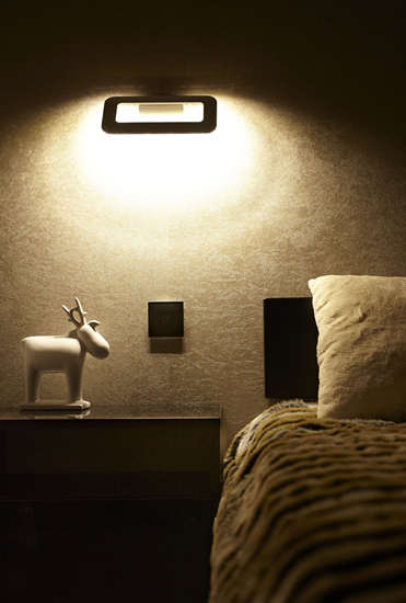 编辑点评:这款床头壁灯设计使光源集中于墙面,既能增加床头空间的亮度,也能削弱强光带来的刺眼感。