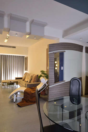 编辑点评:客厅背景墙的凹凸纹理充满质感,在顶部的LED 灯饰映照下空间显得格外柔和温馨。