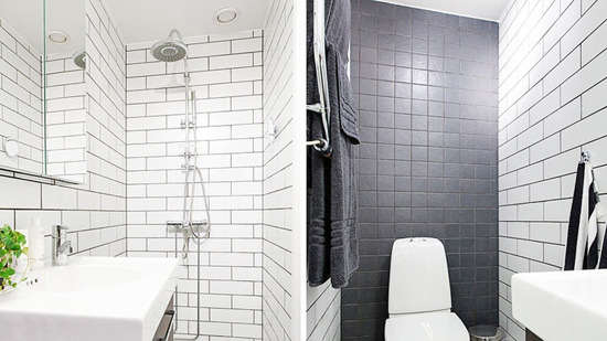 小编的话:卫浴间在色调上采用了强烈对比的黑白色调,使整个卫浴间在视觉上就能带给人一定的视觉冲击感。以白色砖墙与黑色小格子墙面结合,大大的镜面也在视觉上带来了一定的扩容感。