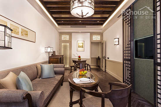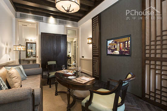 编辑点评:除了部分从老家具市场上淘来的纯正民国家具外,酒店内的其他家具都均为水曲柳实木家具,按照老式家具的样式设计定制,擦色做旧,木纹明显,颇具质感。民国范十足的八角、五斗橱和箱几、替代窗帘的木百叶、采用民国年代锡焊手艺的灯具……酒店里的每个细节都用来呈现道地的民国味儿的起居空间。