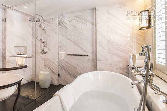 编辑点评:酒店的洁具全部源于英国进口,纯铜镀镍,款式古朴典雅,小巧而精致。