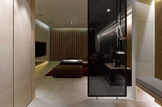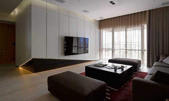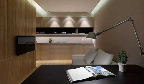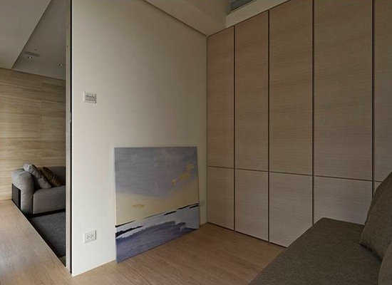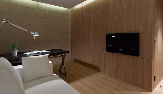 编辑点评:平整的木地板一路延伸入休闲区,电视墙内设有拉门,使之能完全独立运用。
