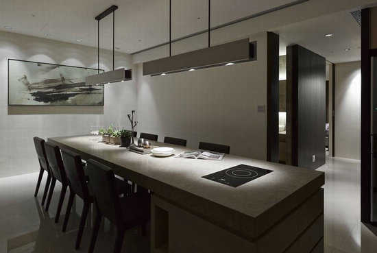 编辑点评:整合电陶炉和收纳功能的长桌,兼具阅读、休闲互动功能,同时也可以当成开放式厨房的工作桌。