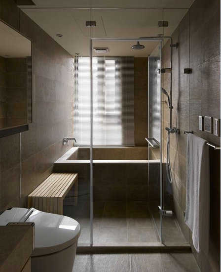 编辑点评:淋浴间内摆放桧木椅,在家就能享受疗愈身心的蒸气浴。
