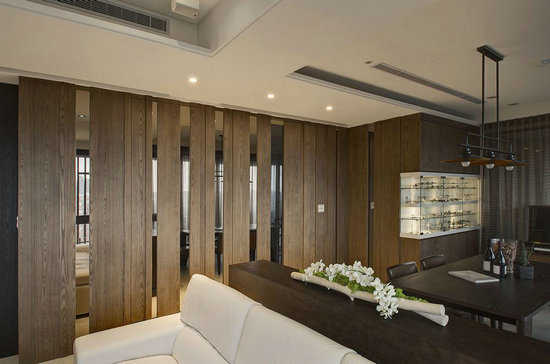 编辑点评:仅以半高柜体为段落的客、餐区,除了稳定沙发量体,同时表现大空间开阔。