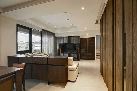编辑点评:单纯的居住人口及坪数条件下,让空间衍生更多发展可能,包含吧台及休闲室的设定,使居家充满轻松休闲的味道。