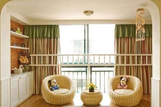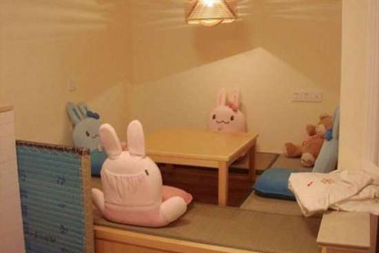 休闲区建筑的日式(日式装修效果图)地台榻榻米(榻榻米装修效果图),加上藤制休闲椅,风格非常协调。