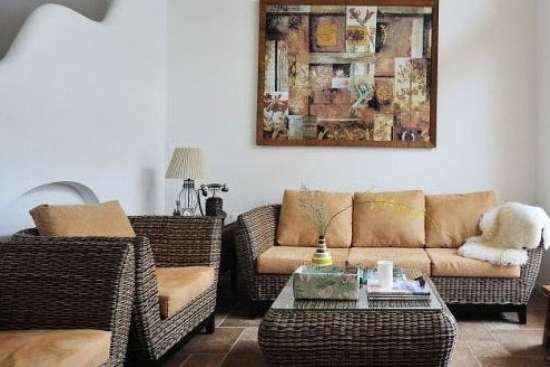 日本人讲究禅意,淡泊宁静,卧室(卧室装修效果图)里装饰画当然少不了,一副实木框抽象画对日式家居的打造很有画龙点睛之用,藤制的沙发(沙发装修效果图),让家居充满自然的味道。