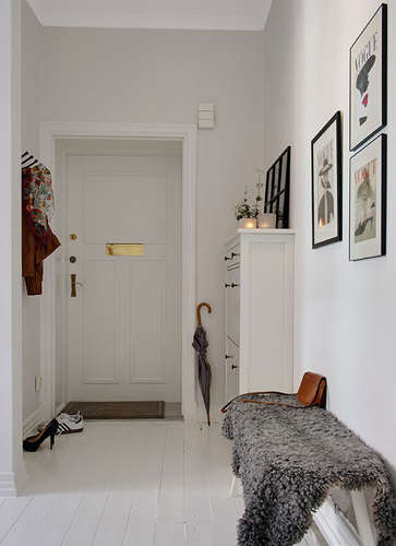 小编的话:纯白色空间本身就会带给人一种简约清新的感觉,如果玄关处正好以长长的走廊形式呈现,那么正好能够利用上房型的特点,摆放上舒适的换鞋凳,简单的白色鞋柜也是进门玄关处不可或缺的,这样的玄关能够给人留下整洁清新的第一印象。