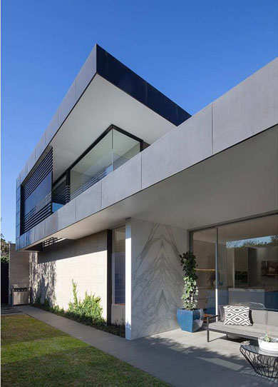 编辑点评:白色的基调使空间单纯明净,外观立面的多块面处理丰富了空间层次,栅栏、瓷砖的造型充满几何美感,整体空间呈现利落的现代简约风格。