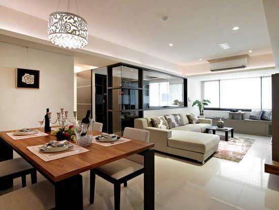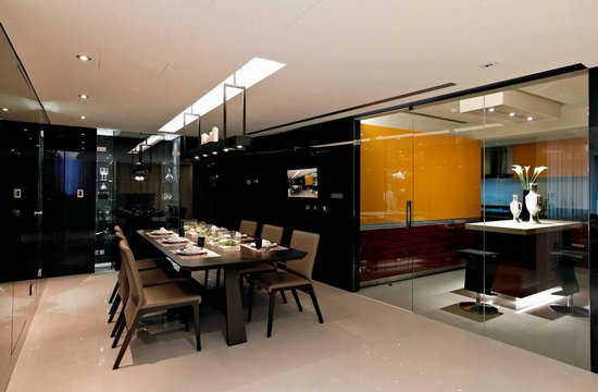 编辑点评:烹调空间的再造,设计师以烤漆玻璃的大面积铺陈,让环境的清洁更为容易实用。