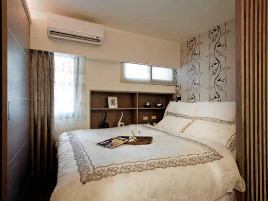 编辑点评:转换进主卧部份,格栅为屏的设定化解了主卧床头入门直视的顾忌。