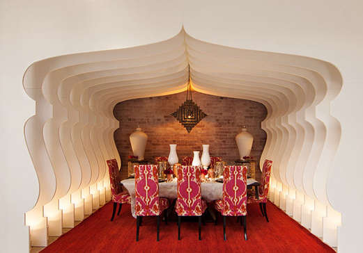 小编的话:餐厅具有立体感的对称外形充满时尚质感,天花和墙壁的线条轮廓更让空间优美得无可挑剔,优雅的用餐环境令人食欲大增。
