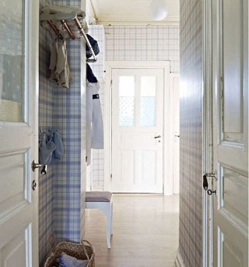 小编的话: 一处正在出售中的瑞典物业,从玄关开始逛,这里的重点是壁纸的妙用,不用贴满整片墙,而是在重点部位做强调。