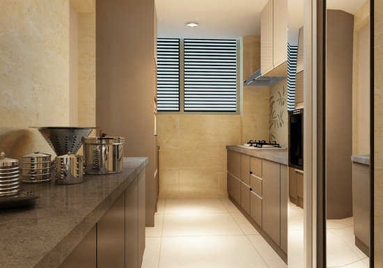 编辑点评:设计师缀点镜面素材放大一字型厨房空间。