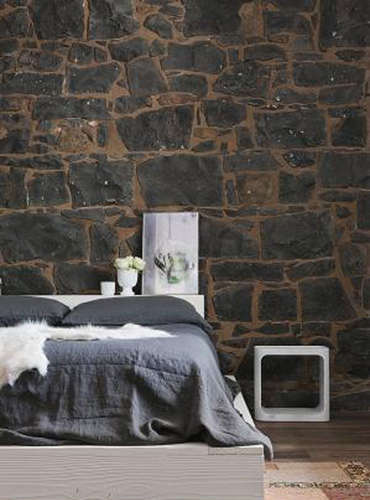 以不规则的石头质感拼就而成的墙面,已不需要什么装饰,就让墙面袒露出其原有的肌理和色泽,使整个卧室展现出了非常接近自然的原生态的美感。