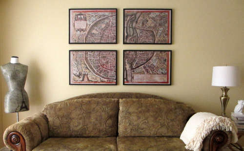 小编的话:将一整张大型墙面装饰挂画,规则的分割成N份,每份独立装裱,最后统一挂上墙,这不,效果可得比大量的照片展示来得有个性,创意。