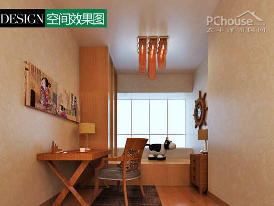 2、西北角的卧室改为多功能房,集书房与榻榻米于一体。
