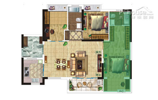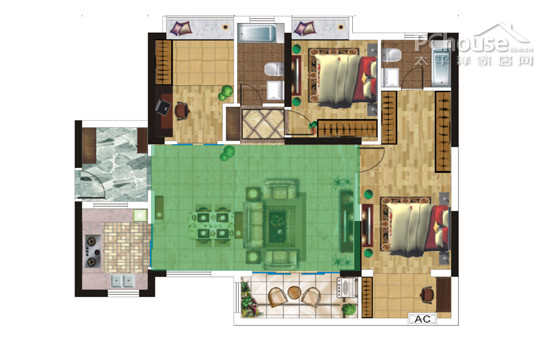 | 3、客厅地砖希望能区分出就餐区域和会客区域。 | |||||