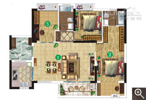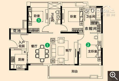 2、对于三口之家来说,卧室数量显得稍多,功能较单一。