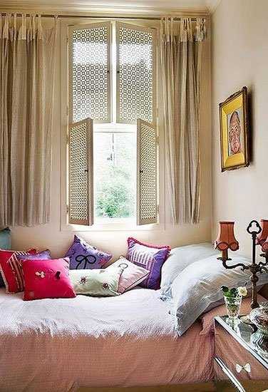 若是窗边的卧室,那除了将床以足够舒适的姿态呈现,窗户上也大可以加入心思。采用可以向外推开的门式木窗,传统而极富韵味,床上的精致格纹将光轻轻透入,过滤了阳光与微风,留下美丽的光影。
