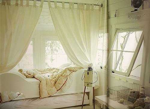 充满森林系味道的白色卧室,最能让少女怦然心动。较多的窗体,让室内拥有充足的采光与新鲜的空气。窗边的白色木窗边缘弧度优美,外延还特设布帘,进一步增加隐蔽度。床底的空间则是可以拉出的另一床位,可供客人来时使用。