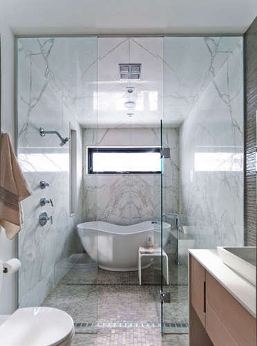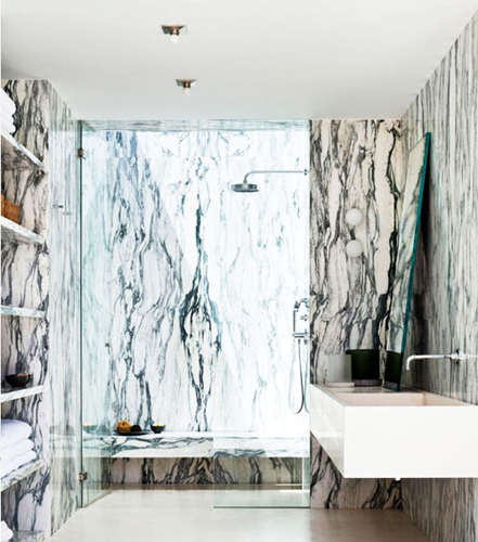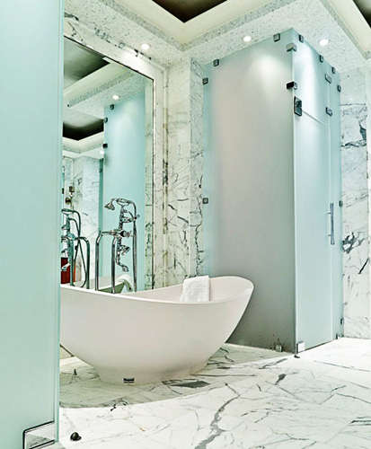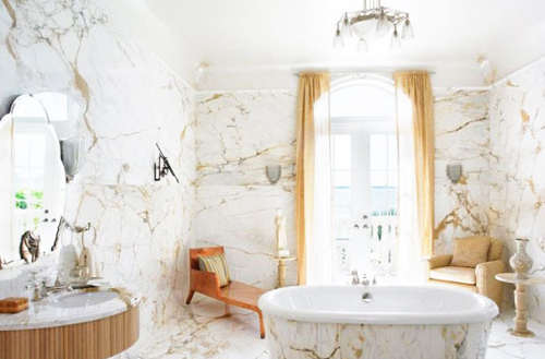 土豪们总是极尽奢侈的装饰自己的家,所以在此种情况下,卫浴空间也不能幸免,而大理石总是最好的选择。它的精炼和昂贵正是土豪所需要的。但是大理石也同样能在奢华的同时做出极简主义的优雅感,这个就是好多人都不知道了的吧!