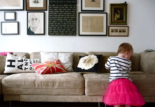 空间较大的墙面可以悬挂数量较多的画作,让画作有一种欲将墙面完全覆盖之势。因为图画色彩低调,便也不觉凌乱。
