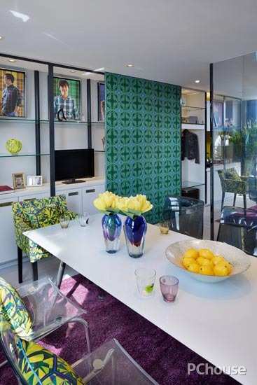 比起素色的搭配,色彩的碰撞是一门学问,做得好能夺人眼球,做不好则杂乱无章。在这里,设计师将斑斓缤纷的色彩置于一室,竟然制造出大方活泼的单一主题。