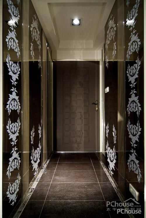 在现代以及奢华风格的家居空间中,可以多利用镜面材质的反射原理,来达到放大空间的效果,狭窄的玄关区,利用深色烤漆柜体的反射,不但延伸视觉,同时也提升了华丽的氛围。而入门的两边则暗藏了衣帽间,达到了高效收纳又不影响美观的效果。(特别鸣谢72炫设计)