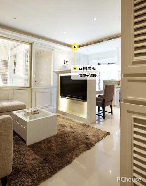 客厅采光不良,再加上安装空调机位的原因,收纳的最佳地方就是天花的吊顶。与此同时,小户型的视觉层次感还是很值得去营造的,来看看相对应的解决办法吧!