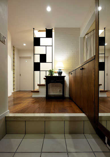 装饰Tips:硅藻土和填充图案的砖设计成的玄关令人眼前一亮,铁栏杆设计更是独具创意。时尚又舒适的空间也在第一时间将轻松带给了客人。