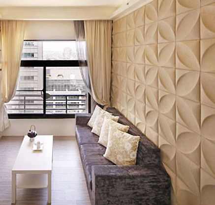客厅主要建材:镜面、鳄鱼皮、不锈钢、仿雪花木皮、人造石、壁纸