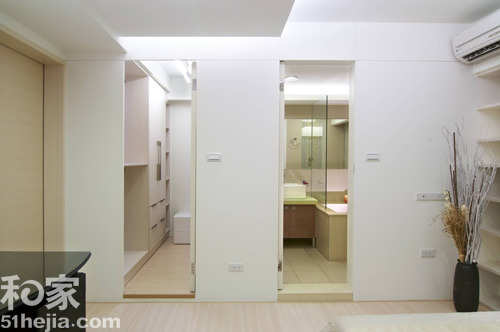 原本位居空间中心的卫浴移至角落,密闭场域开始有了良好的通风及采光。