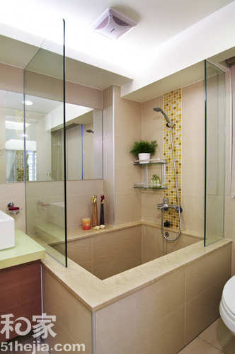 半干湿分离的卫浴设计,延伸入淋浴区内镜面,放大空间视线。