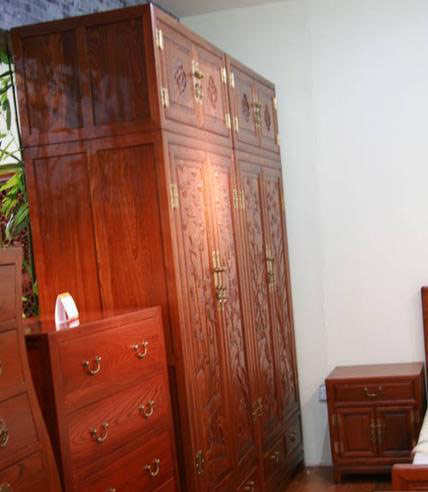 榆木雕花衣柜之侧面