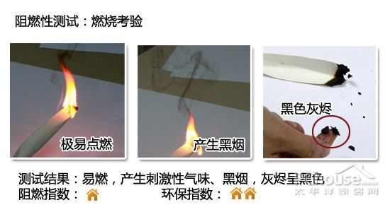 小编建议:这款壁纸的安全性、环保性都较差。大多数PVC材质的壁纸燃烧都会产生上述实验的现象。重视家居环保的消费者就不要采购这类PVC壁纸了,用无纺布或纯纸的壁纸环保性好些;而具备阻燃功能的壁纸往往售价较高,高端消费的网友可考虑。