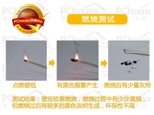 小编建议:壁纸容易被点燃,同样的也有黑色烟雾和灰烬产生,阻燃性和环保性表现平平。