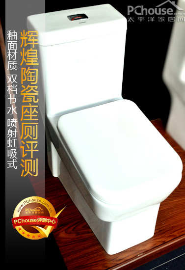 【太平洋家居网 评测频道】这款辉煌陶瓷座厕属于辉煌水暖陶瓷系列的6T164,外观比较特别,不是常见的椭圆形,而是方形设计,采用了一体成型的技术,让产品的外观光滑无比。雪白的颜色体现出简洁的时尚理念,方形的造型设计让人充分坐享这个空间,就像平常坐在椅子一样舒服。