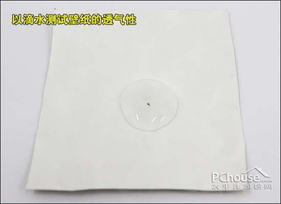 无纺布壁纸以天然植物纤维作为产品的材质原料,因此有着相对良好的透气性能。我们滴水测试检验此款壁纸的透气性能。首先以足够的水分滴加在壁纸的背部,观察壁纸背部滴加的水分,观察水分的下渗速度与浸透范围。