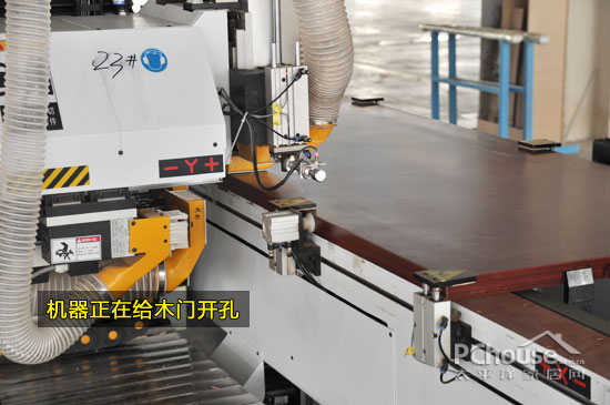 派的门在木门开孔的工序上也投入了大成本,运用一台全国一流的上海跃通开孔机,保证锁孔位置准确无误。而且效率高,每一扇门只需要55秒就可以开完所有孔。这样开完孔的木门更方便顾客回家安装,免除了一些繁琐的安装程序。