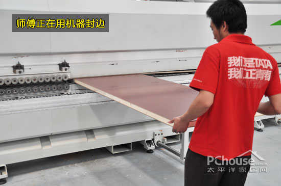 我们在现场也看到了一些刚封完边的半成品木门,仔细看它的封边非常的紧密而且均匀。其实封边虽然是个细节,但对一个实木复合门是很重要的,很多木门开始坏的征兆便是封边开始脱落。