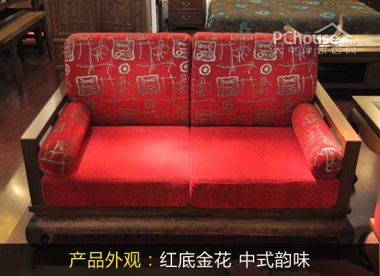 翰明轩这款龙纹沙发采用红底金花,彰显了中国古典美。据店长介绍,这款沙发可选的面料及颜色还有很多,您可以根据喜好进行定制。