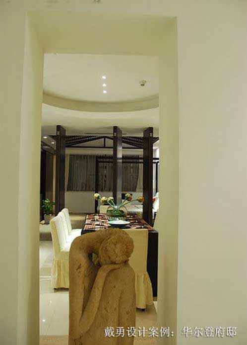 玄关旁的设计以凹槽的形式加以饰品的点缀,充分体现了设计者的别具匠心。各式家具、大大小小的雕塑,共同烘托出浓郁东方文化的氛围。