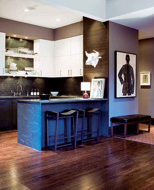 大多数纽约人认为1000平方英尺的单间卧室有些过大。因此,沙哈和希尔的带两间浴室的1800平方英尺的单间卧室可用三个字来概括:好极了。它是对沙哈计划的证明,即他甚至没有定制他自己的单元。大多数装饰面也是如此。厨房内选用的白色油漆橱柜、高效主浴室内的石英墙砖以及客房浴室地板上铺设的大理石马赛克都是建筑物的标准材料。他自己公寓内的公共区域、卧室和办公室地板上的烟草棕色斑点图样是在一位房地产顾问建议用金色橡木板取代沙哈最初的深色方案后才选用的。