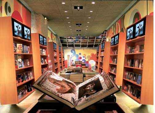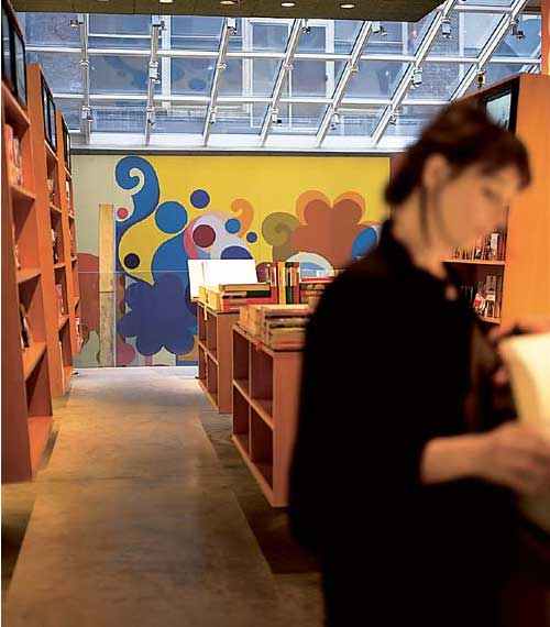 在菲利普.斯塔克(Philippe Starck)设计的最新Taschen书店,这里的书架将为比特利兹.米拉塞斯(Beatriz Milhazes)绘制的壁画让路。
