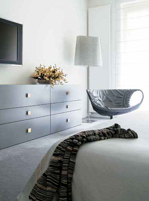 于是,帕斯卡尔.本哈默决定使用基于灰度色调的调色板来设计公寓,并融入其所有“辉煌”,就像一则宣布大风或微风的预言。她在照明设计上很下工夫,使光线在公寓内舒缓流动,并充分利用了混凝土、灰色粗面漆、法兰绒、金属、斜纹软呢和羊毛等多种材料的特点。