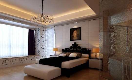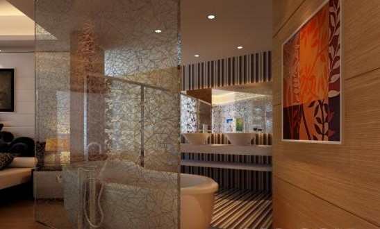 卧室与书房本是独立的两个空间.我们将其墙面打通,让自然穿透的视野加强空间的宽阔与流畅,将空间融为一体.使居主在使用上更加便利.但又不失其可变性,通过茶色玻璃推拉门和暗藏窗帘,使卧室和书房不产生相互干扰.卧室的大面积红紫色电视背景墙,充满活力而今人精神振奋,将居主的个性表现的淋漓尽致.书房的设计较为简洁,太极图案的地毯拼花增加了书房的神秘感,反映居主知识的渊博.